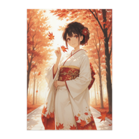 この商品はpixivFACTORYで作られた商品です。サンプル画像は完成イメージのため、実物と異なる場合があります。 柔らかな秋の日差しに包まれた並木道で、紅葉を手に微笑む少女。 白と朱の振袖が光に溶け込むように映え、季節の温もりを感じさせる一枚です。