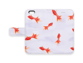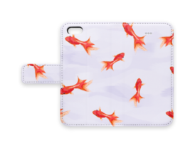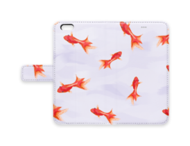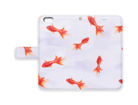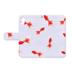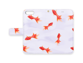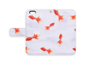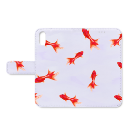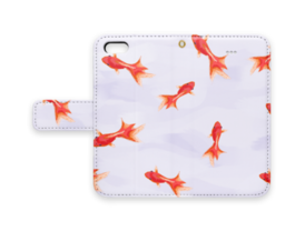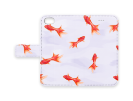 手帳型iPhoneケース 魚01 金魚 レッド ブルーグレー