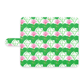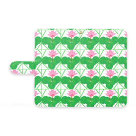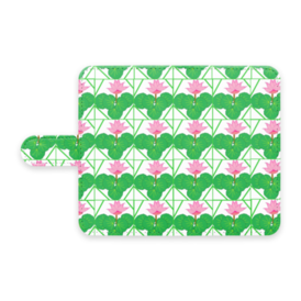 手帳型Androidケース 花02 ボヘミアン グリーン ピンク