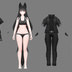 VRChatでの使用を想定した3Dモデルです。 衣装は細かくON、OFFできるように分けていますので 組み合わせにより表現が変えられます。 主に下着、部屋着、外用に分かれています。 ・「スマリ」と「シュマリ」の違い ・髪型 「スマリ」黒髪ロング 後ろ刈り上げショートヘア 「シュマリ」白髪ポニテ ショートヘア ・衣装 「スマリ」黒Tシャツ ローライズショートパンツ ショートソックス 「シュマリ」白Tシャツ スパッツ ニーソ ・その他 尻尾の大きさと胸の大きさの初期値が違います。 外用の衣装は現代風ミリタリー衣装なので シューティングワールド等におすすめです。 ※銃の付属はありません。 横顔を意識したデザインになっているので撮影の幅が広がります。 ※このアバターは正面からでも目線がはっきりと出てしまう為、視線を調整するツールの導入すると撮影しやすくなると思います。 3Dモデル制作、作動確認は下記の環境下で行っています。 Unity 2022.3.22f1 Blender4.4 lilToon 2.3.2 VRChat SDK - Base 3.9.0 VRChat SDK - Avatars 3.9.0 Modular Avatar 1.15.1 ・水着のプレファブをVRChatにアップロードする際はModular Avatarのインポートが必要になります。 ・もちふぃった~について もちふぃった~はVRC向けの衣装を非対応アバターに合わせるためのツールです。 変換をするには変換元、変換先アバターの変換プロファイルが必要です。 今回プロファイルデータを制作したので必要に応じてダウンロードしてください。 もちふぃった~の販売先リンクはこちら↓ https://booth.pm/ja/items/7657840?srsltid=AfmBOor3LuG2WU5xR-55QPNb_xsVrWuHePhKZ8DPAWVwNzNWsRKAHb50