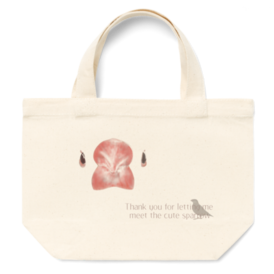トートバッグ - S - プリント面積小『かわいい文鳥さんに出会わせてくれてありがとう』というメッセージを込めた、文鳥さんの正面顔のミニトートバッグです。 文鳥さんへの愛情たっぷりの、一番伝えたい言葉を添えてデザインしました。 ちょっとキリッとしたようにも、甘えているお顔にも見える不思議な文鳥さんの正面顔です。 サイズは、30㎝×20㎝×マチ10㎝、容量が4ℓなので、ちょっとしたお出かけやお弁当などを入れるのにピッタリです。固めのしっかりとした生地です。 この商品はpixivFACTORYで作られた商品です。サンプル画像は完成イメージのため、実物と異なる場合があります。