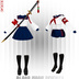 ・Unitypackage (for Unity) ・fbx (model file) + color-specific prefabs ・Texture set 2048 × 2048 : BaseColor, Normal, AO 1024 × 1024 , 822 x 820 : Matcap ・Items included Top / Collar / Skirt / Shorts / Sword Socks / Bracelet / Shoes / Armband ※ Avatar body is not included in this product. ---