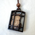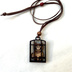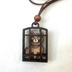 箱檻にうっかり入ってしまったタヌキ。 もうおしまいだとしょんぼりしています。 でも箱檻はかなり大きな隙間があるのでタヌキサイズなら逃げれるかも? でもタヌキはもうおしまいですと諦め顔。 そんな可愛いタヌキの物語が感じられるペンダントです。 ※この作品は受注生産なので画像は参考作品です。注文を受けてから制作するので2~3週間後の発送になります。ご了承下さい。 ※この作品はウッドバーニングという木を焦がした色で表現している為紫外線の強い光に弱く、日に当て続けると褪色します。 素材:シナベニヤ、革紐、ウッドビーズ 技法:ウッドバーニング ペンダントトップサイズ:高さ57mm×横33mm×厚み10mm 革紐長さ:800mm