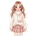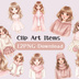 ピンク系今どきガールズ・水彩クリップアートセット(12点)