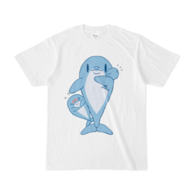 Tシャツ - XL - 白ほっこり癒される“イルカの親子”が、前面と背面の両方にデザインされた可愛いTシャツです。 前面には、腕の中ですやすや眠る子イルカ。 背面には、ちょっぴり照れながら寄り添う子イルカが描かれ、自然と笑顔になるような温かい雰囲気に仕上がっています。 やさしいタッチのイラストは、日常にそっと寄り添うような柔らかいデザイン。 カジュアルコーデにも合わせやすく、普段使いからちょっとしたお出かけまで幅広く活躍します。 癒し系デザインが好きな方や、動物モチーフのアイテムが好きな方におすすめの一枚です。 この商品はpixivFACTORYで作られた商品です。サンプル画像は完成イメージのため、実物と異なる場合があります。