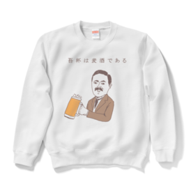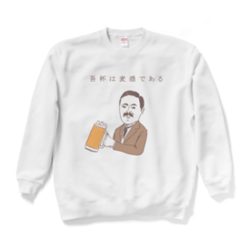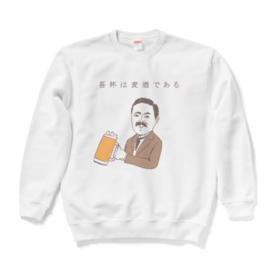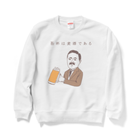 スウェット - XL - ホワイトユーモアビールデザイン「吾杯は麦酒である」 タグ:ビール 飲み会 アルコール 酒 ユーモア ネタ おもしろ ダジャレ パロディ 夏目漱石 歴史 偉人