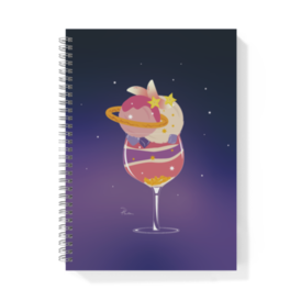リングノート - B5 - 片面― 甘い甘い不思議な宇宙のパフェ ― 宇宙をグラスに閉じ込めた、 幻想的なパフェ《Cosmic Parfait》を1冊のノートにしました。 ◆ 商品スペック ・サイズ:150mm×180mm ・用紙:アートポスト(表紙・裏表紙)、上質紙(本文) ・ページ数:80P(40枚) ・リングカラー:シルバー ・印刷:表紙フルカラー、本文無地 ・書きやすく持ち運びにも絶妙なサイズ感 ◆ 制作の裏側 月や星、宇宙をモチーフとしたパフェを作ってみたいと思い制作しました。 フルーツやアイス、星のトッピングの配置やグラスの透明感、色の重なり、思わず「食べたい!」と思うような作品に仕上げました。 ------------------------------------------------------------ ※お使いのディスプレイによって色味が異なる場合があります。 ※プレビュー画像は元の作品よりも色味が暗く見えることがあります。 実際の仕上がりは、掲載の原画画像も併せてご確認ください。