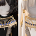 MDD 衣装セット 砂海の帝姫(黒月)セット内容: ヘッドリングの先端飾り x 1 ヘッドリング x 1 ウセヘ(金色の首飾り 黒石タイプ) x 1 布製ショルダー飾り x 1 背中飾りリボン x 2 ネックリング(マント未着用時用) x 1 ネックリング+金属丸カン付きマント(月のマントプリント) x 1 金属丸カン(マント未着用時用) x2 目型アクセサリー(腕用) x 1 蛇型アクセサリー(腕用) x 1 もちあしベースボディ用パンツ(ベルト+ウエストチェーン+リボン付き) x 1 ベースボディ用パンツ(ベルト+ウエストチェーン+リボン付き) x 1 スカート(ウエストチェーン付き) x 1 ネックリングとパンツ接続用ベルト x 2 長+短アームカバーセット x 1 長+短(かかと・つま先オープン)ソックスセット x 1 コペッシュ(湾曲剣) x 2 シールテープ x 1 ブルータック x 1 パンツ用予備金属パーツ x 4 MDD 衣装セット 砂海の帝姫(白日)セット内容: ヘッドリングの先端飾り x 1 ヘッドリング x 1 ウセヘ(金色の首飾り 白石タイプ) x 1 布製ショルダー飾り x 1 背中飾りリボン x 2 ネックリング(マント未着用時用) x 1 ネックリング+金属丸カン付きマント(太陽のマントプリント) x 1 金属丸カン(マント未着用時用) x 2 目型アクセサリー(腕用) x 1 蛇型アクセサリー(腕用) x 1 もちあしベースボディ用パンツ(ベルト+ウエストチェーン+リボン付き) x 1 ベースボディ用パンツ(ベルト+ウエストチェーン+リボン付き) x 1 スカート(ウエストチェーン付き) x 1 ネックリングとパンツ接続用ベルト x 2 長+短アームカバーセットx 1 長+短(かかと・つま先オープン)ソックスセット x 1 蛇神の杖 x 1 シールテープ x 1 ブルータック x 1 パンツ用予備金属パーツ x 4 【衣装セットについてのご注意】 1.本衣装の対応サイズは、MDD S・M・M+・L・L+胸/MDDベースボディ(DD-f3)、MDDもちあしベースボディ2.0(DD-f3)、MDD もちあし ベースボディ(DD-f3)、MDDもちあしベースボディ2.0(DD-f3)、およびNGworkshop製やわ尻・もちあしやわ尻となります。他ドール素体への適合は未検証です。 2.武器やヘッドリングなどのパーツは、3Dプリント品およびレジン製パーツを使用し、カラー塗装済みです。長期の扱いや摩擦により塗装が剥げる場合がありますのでご了承ください。レジンパーツは高所からの落下で破損する恐れがありますので、着脱時には十分ご注意ください。黒色塗装はGSIクレオス(Mr. Hobby)C2、金色はGX210、表面コートはGX113を使用しています。 3.金属装飾はメッキ加工(鍍金)です。長期の使用や保管によって酸化し、黒ずむ場合がありますので、乾燥した場所・防湿庫での保管や、アクセサリー用防錆スプレーのご使用など、お手入れをお願いします。 4.着用方法や、生地にシワができた場合のアイロンのかけ方などは、衣装に付属している説明書をご確認ください。 もし説明書をなくしてしまった場合は、BOOTH や X(旧Twitter)のDMからお気軽にご連絡ください。 5.写真で使用しているNGworkshop製やわ胸・もちあしやわ尻は、Photoshopにて側面の合わせ目を消しております。 6.家に喫煙者がいないが、猫を飼っています。素人のハンドメイド作品のため、完璧を求める方はご遠慮ください。 7.モニターの環境などにより実物と画像の色が若干異なる場合もあります。 8.日本国内にて発送しております。 9.配送業者の原因でお洋服のパッケージが潰れる可能性があるので、ご容赦ください。 10.アイロンでの加熱が必要な場合は、アイロンの最低温度から試して、温度が高すぎて生地が傷むのを防いでください。 11.商品到着後、何か不明な点がありましたら、booth及び X(旧Twitter)(@NoGood_NG)のDMへご連絡ください。 12.梱包代、送料を価格に含める。委託先より発送いたしますため、配送はヤマト運輸(黒猫)のみとさせていただいております。ご理解のほどよろしくお願いいたします。 13.元画像:www.ng-workshop.com