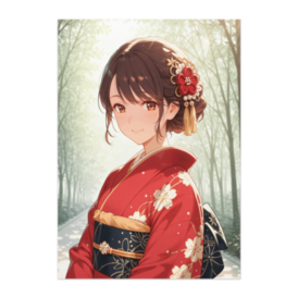 ポスター - B2この商品はpixivFACTORYで作られた商品です。サンプル画像は完成イメージのため、実物と異なる場合があります。 柔らかな林道の光に包まれた、赤い振袖の美少女を描いた現代アニメイラスト風ポスターです。 自然光にきらめく髪と上品な佇まいが、静かで美しい世界観を演出します。 和の雰囲気と優しい表情が魅力の一枚です。