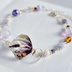もうそれだけで存在感たっぷりの大ぶりサイズのヴィトライユ風アクリルビーズをメインに 幻想的なマットライトアメジスト色のルナフラッシュ、アメジストラスターやトパーズ色などのファイアポリッシュチェコビーズ、オペークパープルやフルコートゴールド色などのガラスビーズを合わせたお洒落なブレスレットとなっております☺ メインのお色は可憐で肌馴染みの良いラベンダーパープル色、ゴールド金具と合わせて大人可愛い色合いでまとめました。 単品でのご着用はもちろん、ゴールド系のバングルやラベンダーパープルやライトブラウン色などのブレスレットと一緒に重ね着けされるととても素敵だと思います♪ ☆ヴィトライユ風アクリルビーズ パンジー ヒネリ 20x15mm ☆ファイアポリッシュチェコビーズ アメジストラスター 8mm ☆ルナフラッシュ マットライトアメジスト ラウンド型 8mm玉 ☆ファイアポリッシュチェコビーズ 透明感のあるレモン ダークトパーズ 6mm ☆ファイアポリッシュチェコビーズ 不透明ホワイト まだら感のあるラベンダー 6mm ☆ファイアポリッシュチェコビーズ ゴールドライン 特殊カラー 6mm ☆ガラスビーズ オペークパープル ボタンカット 6mm ☆国産アクリルパール(ユリア樹脂) ラベンダー 艶なし ラウンド型 6mm玉 ☆ガラスビーズ フルコートゴールド ボタンカット 4mm ☆ガラスビーズ ライトパープルオーロラ ボタンカット 4mm ☆ガラスビーズ ミルクベージュ フラットコイン 4mm ☆ファイアポリッシュチェコビーズ オペークベージュ クリアグリーン ライトトパーズ 4mm ☆ファイアポリッシュチェコビーズ パープル クリア×ブロンズ ☆ラウンドフープ ゴールド ☆座金 ゴールド ☆スペンサー ゴールド ☆メタルビーズ ゴールド ☆丸カン ☆9ピン ☆アジャスター ☆カニカン 長さは約24cmとなっております。(5cm程のアジャスターを含む) ※少し大きめサイズとなっております。