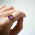 推し色★推し誕生石★ 天然石 アメジストの菱形リング【フリーサイズ】S925 18KGP