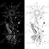 太陽と天照大神のアート線画 - 高解像度png or ai(ベクター)