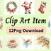クリスマスシーズンに大活躍する、 クリスマスモチーフのクリップアート12種類セットです。 冬のイベント・SNS・ハンドメイドに使えるデザイン素材 カード制作、SNS投稿、ハンドメイド作品、デジタルコンテンツなど、 幅広い用途でお使いいただけます。 水彩画風のやさしく使いやすいデザインなので、 個人利用・商用利用どちらにもおすすめです。 セット内容(全12種) ・サンタクロース ・トナカイとソリ ・クリスマスツリー ・スノーマン ・プレゼント ・クリスマスケーキ ・キャンドル ・リース ・天使 ・クリスマスディナー ・イルミネーション ・靴下 ・ファイル形式:PNG ・解像度:高解像度 ・点数:12点 ご利用について ・商用利用可 ・著作権は放棄しておりません