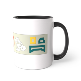 ツートンカラーマグカップ - 直径 8.2cm / 高さ 9.5cm古代エジプトのヒエログリフのツートンマグです。 自作のドット絵ヒエログリフで左から「イウ(ある)ラー(太陽が)エム(中に)ペト(空)」で「太陽が空にある」と書いてあります。 色はラムセス大王展で撮影したアブシンベル小神殿の復元着色動画の色を基本当てて、テーベの葬祭殿(おそらくラムセウム)の復元着色動画のものを参考にわからない配色を当ててったものです。 この商品はpixivFACTORYで作られた商品です。サンプル画像は完成イメージのため、実物と異なる場合があります。