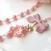 苺ミルクのような色の樹脂パールを使った ネックレスです。 リボンやお花を使って可愛く仕立ててあります。 リボンの上部から首の後ろの部分まで サイズ違いのビーズを使いアシンメトリーな デザインになっています。 長さ 42 cm +アジャスター5cm ☆ お箱に入れ、リボンをかけてお届けいたします ☆ ୨୧・・・・・・・・・・・・୨୧・・・・・・・・・・・・・୨୧・・・・・・・・・・・・・୨୧・・・・・・・・・・・୨୧ 当店の商品配送方法は、対面手渡しで追跡番号付きの 郵便局のレターパックプラス(520円)のみとなっております。 発送後、追跡番号とお届け予定日をお知らせいたします。 ***発送は土日祝はお休みとさせていただきます*** ୨୧・・・・・・・・・・・・୨୧・・・・・・・・・・・・・୨୧・・・・・・・・・・・・・୨୧・・・・・・・・・・・୨୧