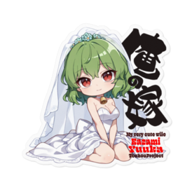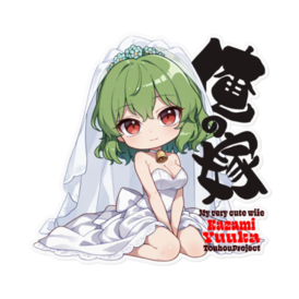 ステッカー - 160 x 160 (mm)(キャラのみ)🌻💍 【祝・ご成婚】四季の女王が、あなただけの「花嫁」に。風見幽香と誓う永遠の愛💍💖 「……ふふ、驚いたかしら? あなたの隣を、私が独占することに決めたの。」 東方Projectの美しき大妖怪、風見幽香が、奇跡のウエディングドレス姿であなたの元へ嫁ぎます。 普段の威厳ある姿とは一変、あなただけに見せる最高に愛らしいチビキャラ姿のステッカーが登場しました。 これは単なるステッカーではなく、彼女と結ばれたことを証明する「入籍届」のような存在です。 力強く描かれた「俺の嫁」の文字は、誰にも譲らない独占権の証。 彼女をあなたの身近なアイテムに迎えるその瞬間が、二人の幸せな**「結婚」**式の始まりです。 この商品はpixivFACTORYで作られた商品です。サンプル画像は完成イメージのため、実物と異なる場合があります。