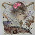 オリジナル 手描きイラスト 女の子 「椿の通り道」 正方形サイズ 透明水彩