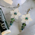 BLEACH 日番谷冬獅郎 イメージ ブレスレット& イヤリング/ピアス ver.2 静謐に咲く白 氷の輝き ─凍てつく世界に広がる 絶対零度の気配─ ◎ブレスレット アクリルパーツ、ガラスビーズ、メタルパーツ、ブレスレット用ゴムを使用しています! 内径約16cm(一般的な女性用ブレスレットの内径が約15cmな為、ややゆったりめサイズです) ◎イヤリング/ピアス アクリルパーツ、ガラスビーズ、メタルパーツを使用しています! 掲載はイヤリングですが、サージカルステンレスのキャッチタイプピアス、フックタイプピアスへ変更可能です!ご希望の場合は、お知らせください! ☆サージカルステンレスは、金属アレルギーを引き起こしにくい素材として知られています!医療器具やボディピアスなどによく使用されています! 全長(モチーフ部分)約4cm 冬獅郎くん生誕祭2025のお祝いに作成したお品です! 氷輪丸の氷、氷の花、隊花や羽織裏の千歳緑色、、冬獅郎くんをイメージするモチーフを詰め込んだお品です! 推しイメージカラーアクセサリーで気分UP♫ 華やかなデザインで女子力もUP♫なアクセサリーです!