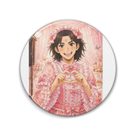 缶バッジ - 76mmマイキャラ・トーハムの女装モデルイメージの缶バッジ。ガーリー系ワンピースにて、愛嬌をふりまく。 この商品はpixivFACTORYで作られた商品です。サンプル画像は完成イメージのため、実物と異なる場合があります。