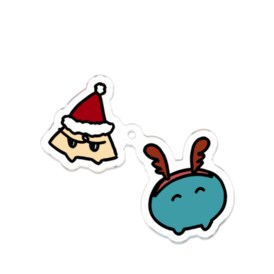 アクリルキーホルダー - 70 x 70 (mm)【期間限定】幾何学の住人たちのクリスマス アクリルキーホルダー 不思議な世界「幾何学」の住人たちにも、待ちに待ったクリスマスがやってきた! サンタ帽子をちょこんと被って少し得意げな三角形くんと、トナカイのツノをつけてにっこり嬉しそうな丸くん。 二人の仲睦まじいクリスマスコスチューム姿を、アクリルキーホルダーに閉じ込めました。 冬のお出かけバッグや、クリスマスツリーのオーナメント代わりに飾るのもおすすめ。 この季節だけの、特別なゆるかわデザインをお楽しみください。 大切な友人へのちょっとしたクリスマスプレゼントにもぴったりです。