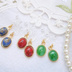 あなたを守って。 加護が眠っているような、不思議なマーブル模様のカボション。 レッドは人口トルコ石の様な黒い模様入り、 ラピスは薄いブルーと濃いブルーが混ざり合い金の箔模様入り。 この2色はアメリカ製アクリル。 グリーンは国産ヴィンテージガラスです多分。 シンプルに枠チャームに貼り付けて。 コロンとしたサイズ感。 ドレッシーなお洋服にも、綺麗めお姉さんコーデにも。 褐色のお肌のお嬢さんやお兄さんに似合いそうですな…グヘヘ…。 お揃いのネックレスもあります。 SD・DDサイズ ペアでの販売です。 透明な樹脂製のパーツを使用、金具が目立つことなく撮影にも向いています。 小さなパールを埋め込み、目立たない部分も可愛く。 挟むだけの簡単装着。 ドール耳のホール部分(実際は開いてませんが)に 丁度挟むようにして頂けるとバランスが取り易いです。 造形により耳の形状も違う為、着用可/不可あり。 樹脂ノンホールピアスパーツ:約11mm 無穴パール(アクリル):3mm カボション(アクリル/ガラス):8×6mm 金具:ゴールドカラー(メッキ) ※無穴パール・カボションの貼り付けにはボンドを使用しています。 金具カラーをシルバー色/金古美へ変更オーダー可能。 ご希望の方は備考欄にその旨ご記入頂くか、事前にお問い合わせ下さい。 ※受注製作となります。 ※材料在庫限り再仕入れ不可