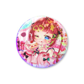 ホログラム缶バッジ - 44mm44ミリサイズの缶バッジです!!! ハートのホロ入り❤ イラスト 是はぐき先生 この商品はpixivFACTORYで作られた商品です。サンプル画像は完成イメージのため、実物と異なる場合があります。