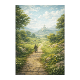 ポスター - B2この商品はpixivFACTORYで作られた商品です。サンプル画像は完成イメージのため、実物と異なる場合があります。 やわらかな陽光と緑に包まれた、幻想王国へと続く小径。 静かな自然の中を進む後ろ姿が、物語の余白を想像させます。 穏やかで安心感のある色調が、 空間にそっと寄り添うファンタジー風景ポスターです。