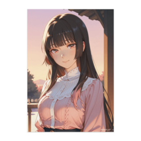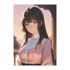 ポスター - B2この商品はpixivFACTORYで作られた商品です。サンプル画像は完成イメージのため、実物と異なる場合があります。 夕暮れ時の静かな公園テラスで、 姫髪カットの少女がやさしく微笑む一枚。 淡いピンクの装いと落ち着いた表情が、 上品で少し物語性のある雰囲気を演出します。 一日の終わりに、心を静かに整えてくれる 穏やかなイラストポスターです。 空間にやさしさと品の良さを添えてくれます。
