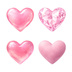 【ハート素材】ピンクハート 4点セット|ぷるん・ガラス・宝石・マット|透明感・ガーリー・背景透過PNG