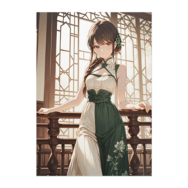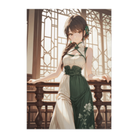 ポスター - B2この商品はpixivFACTORYで作られた商品です。サンプル画像は完成イメージのため、実物と異なる場合があります。 大きな窓から差し込むやわらかな光と、翡翠グリーンの配色が爽やかな中華ドレススタイル。 編み込みヘアと優しい表情で、見るだけで気持ちが明るくなる“癒し”の雰囲気を目指しました。
