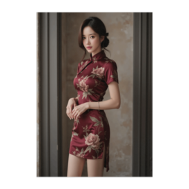 ポスター - B2この商品はpixivFACTORYで作られた商品です。サンプル画像は完成イメージのため、実物と異なる場合があります。 深みのあるボルドーレッドに、繊細な花柄をあしらった エレガントなチャイナドレス姿の女性を描いたビューティーポスターです。 洗練されたシルエットと上品な柄が、 落ち着いた空間に大人の華やかさを添えます。 インテリアとしても飾りやすい、気品ある一枚です。