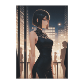 ポスター - B2この商品はpixivFACTORYで作られた商品です。サンプル画像は完成イメージのため、実物と異なる場合があります。 都会の夜景を背に、静かに佇む女性を描いたイラストです。 横顔のラインや姿勢の美しさ、落ち着いた表情を大切に表現しています。 黒を基調としたドレスと柔らかな光が、洗練された大人の雰囲気を演出します。 お部屋や作業スペースに、静かで上品な空気を添える一枚です。