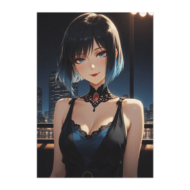 ポスター - B2この商品はpixivFACTORYで作られた商品です。サンプル画像は完成イメージのため、実物と異なる場合があります。 夜の都会を背景に、静かにこちらを見つめる女性を描いたイラストです。 落ち着いた表情とやわらかな視線、控えめな色気を大切に表現しました。 黒のドレスと繊細なレース、さりげない赤のアクセントが、 上品で大人びた雰囲気を引き立てています。 空間にそっと寄り添うような、静かな存在感の一枚です。