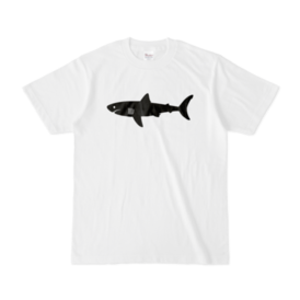Tシャツ - XL - 白ホホジロザメのシルエット。 シンプルな感じで、サメ好きアピール。 この商品はpixivFACTORYで作られた商品です。サンプル画像は完成イメージのため、実物と異なる場合があります。