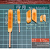 【1/3スケール】きりたんぽ 各種 •焼き色を丁寧に再現したミニチュアの「きりたんぽ」です。 片面はほんのりとしたきつね色、もう片面には軽く網目を施しています。 (※カットペアには網目加工はありません)。 網目は、待月の卓上七輪シリーズ付属の網(703183・網/四角・卓七共用)を使用して付けています。 オビツ50サイズのハンドで角度による自己保持を確認しておりますが、より安定した使用には、ひっつき虫や両面テープなどでの固定をおすすめします(※カットペアを除く)。 ■ バリエーション きりたんぽ大(1/3スケールで実物を忠実に再現) 品番:25-703533 きりたんぽ小(卓上七輪に合わせた小ぶりサイズ) 品番:25-703534 きりたんぽ大・カットペア(鍋用のななめ切り) 品番:25-703540 きりたんぽ小・カットペア(鍋用のななめ切り) 品番:25-703541 別売りの七輪(703135)および卓上七輪シリーズ(703180/703520/703521)と組み合わせることで、 より臨場感のあるディスプレイをお楽しみいただけます。 ※標準寸法・重量(個体差がありますので、ご了承ください) ・703533 きりたんぽ大 10.4*8.8*85.2 4.2g(実測) 持手部Φ3.1mm ・703534 きりたんぽ小 6.7*5.6*53.4 1.1g(実測) 持手部Φ2.2mm ・703540 きりたんぽ大-カットペア 10.5*8.8*32.1 1.7g(実測/1個あたり) ・703541 きりたんぽ小-カットペア 5.8*4.5*17.2 0.3g(実測/1個あたり) !カットペアには、レジン残留防止のため、サイドにわずかなスリッド(切目)を入れております。 ■ 使用材料 共通(きりたんぽ本体) UVレジン/アクリル塗料/トップコート(UVカット・つや消し) きりたんぽ大 持ち手:竹(はめ込み式) きりたんぽ小 持ち手:木(接着) 大・小カットペア 持ち手のはめ込み・接着は行っていません ※発送 クリックポスト ※ご使用上の注意 ※食品ではありません。 ※長時間ドールに持たせないでください。 ※火気を近づけないでください。 ※鋭利な箇所でのドールへの傷つけにご注意ください。 ※仕上がりに個体差があります。予めご了承の上、ご購入をお願い致します。 ※本品を使用・保持・保管したことにより発生したすべての事故・ケガ・色移り・損害等については、一切の責任を負いかねます。 ※非常に小さな造りとなっておりますので、誤飲(特にお子様・お年寄り・愛玩動物)には御注意頂き、手の届かない所で使用・保管をお願い致します。 ※保持・温度湿度・摩擦によるドールや衣類などへの色移りにご注意ください。 ※使用時、鋭利な箇所・破損によるお怪我にご注意ください。 ※日光が当たるところで保管しないでください。 ※本品は造形にUVレジンを使用しております。異変を感じた際は、直ちに使用を中止してください。