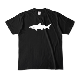 カラーTシャツ - XL - ブラック (濃色)コワモテだけど、おっとり屋。 白いワニじゃなくて白いサメ。 シロワニのシルエット。 この商品はpixivFACTORYで作られた商品です。サンプル画像は完成イメージのため、実物と異なる場合があります。