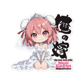 ステッカー - 160 x 160 (mm)(キャラのみ)💍🐉 【祝・入籍】説教よりも、甘い誓いを。茨木華扇と歩む、一生モノの**「結婚生活」**。 「……こ、これで見納めですよ? 今日からはあなたの妻として、もっと厳しく、そして……もっと近くであなたを支えます。ずっと、一緒にいてくれますね?」 東方Projectの導き手、茨木華扇が、可憐なウェディングドレスを纏ったチビキャラ姿のステッカーになりました! 今回、私たちが最も強調したいのは、彼女との真剣な**「結婚」**です。 普段は凛としていて少し近寄りがたい「山の仙人」が、あなたという唯一無二のパートナーを選び、永遠の愛を誓いました。 背景に堂々と記された「俺の嫁」の文字は、彼女を独占し、共に歩む決意をしたあなたへの「愛の証明書」に他なりません。 この商品はpixivFACTORYで作られた商品です。サンプル画像は完成イメージのため、実物と異なる場合があります。