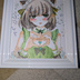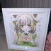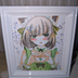 萌え袖猫耳メイド少女 オリジナル手描きアナログイラスト コピック+ホログリッター 寸松庵色紙 サインいり