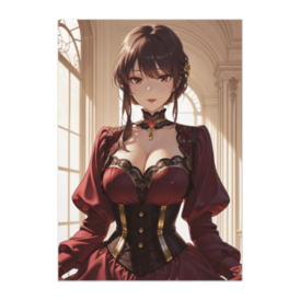 ポスター - B2この商品はpixivFACTORYで作られた商品です。サンプル画像は完成イメージのため、実物と異なる場合があります。 重厚感のあるボルドーカラーのヴィクトリアン風コルセットドレスを纏った女性を描いたアート作品です。 レース装飾と薔薇モチーフが、大人の華やかさとクラシカルな美しさを引き立てます。 静かな佇まいと落ち着いた表情が、気品ある魅力を感じさせる一枚です。