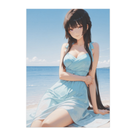 ポスター - B2この商品はpixivFACTORYで作られた商品です。サンプル画像は完成イメージのため、実物と異なる場合があります。 澄んだ海と空を背景に、淡いブルーのドレスをまとった女性を描いたポスター作品です。 涼やかな色合いとやわらかな表情が、夏の静けさと上品さを感じさせます。 リビングや寝室、ワークスペースなど、 空間に清潔感と落ち着きを添えるインテリアアートとしておすすめです。