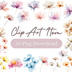 やさしい淡色系*アルコールインクアート風の花のクリップアート30点|背景透過PNG形式