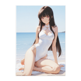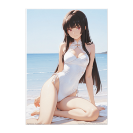 ポスター - B2この商品はpixivFACTORYで作られた商品です。サンプル画像は完成イメージのため、実物と異なる場合があります。 白を基調とした花柄デザインが映える、上品でやさしい印象のワンピース水着アート。 穏やかな海と空を背景に、透明感と落ち着いた美しさを表現しています。 ナチュラルで清潔感のある空間づくりにおすすめの一枚です。