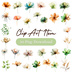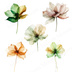ナチュラル・ボタニカル*アルコールインクアート風の花のクリップアート30点|背景透過PNG形式
