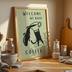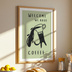 A cozy minimalist cat illustration inspired by kitchen life and coffee time. This artwork features a playful black cat serving coffee with a simple and warm design, perfect for kitchen decor, cafe walls, or cozy spaces.