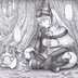 Doroを見つめるスノーホワイトの色紙イラスト 原画