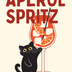 A playful and modern illustration of a curious kitchen cat reaching for a refreshing Aperol Spritz. The bold orange tones, clean graphic style, and minimal composition create a lively yet stylish atmosphere inspired by cozy kitchen interiors.