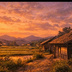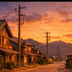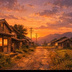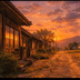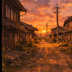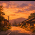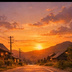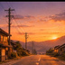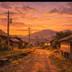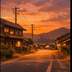【AI背景】夕焼けの田舎道|癒し・ノスタルジー風景素材(配信・動画向け)