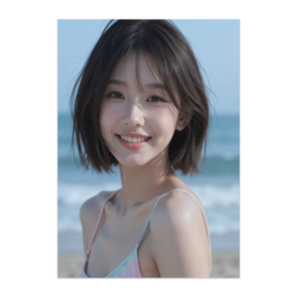 ポスター - B2この商品はpixivFACTORYで作られた商品です。サンプル画像は完成イメージのため、実物と異なる場合があります。 海と空を背景に、柔らかな表情をクローズアップで描いたポートレート作品です。 ボブカットの髪が夏風に揺れ、自然体の笑顔が心を和ませます。 見る人にそっと寄り添うような、癒しをテーマにした一枚です。