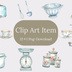 【キッチン用品シリーズ】水彩アンティーク風クリップアート12+1セット|PNG背景透過