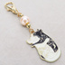 抱擁にゃんこ 白猫と黒猫が抱き合ってる可愛いチャームのキーホルダー コーラルピンク ビーズ 金具変更可